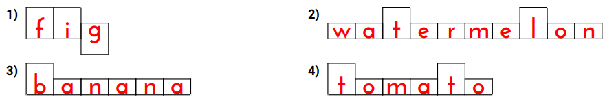 I wasn’t sure what to call these, so we’re going with Snake Boxes (they kind of look like a snake… if you squint). These sheets have students fill in blanks using the “shape” of the lowercase letters in the word as a clue.