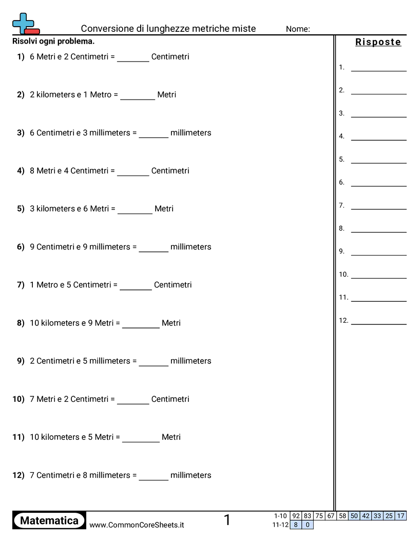 Schede di lavoro gratuite di math su Conversione di lunghezze metriche miste. Ogni scheda contiene 12 esercizi con soluzioni ed è ideale per insegnanti e istruzione a casa. Puoi scaricare il PDF, creare flashcard o impostarlo per l'apprendimento online.