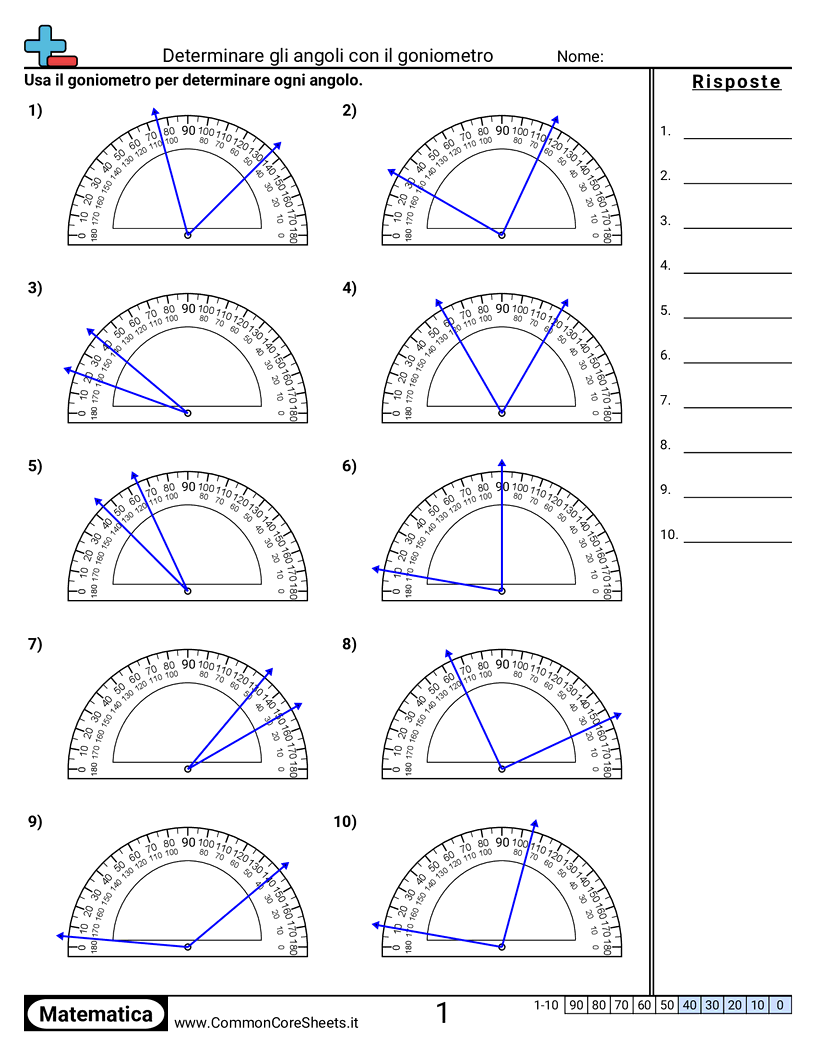 Schede di lavoro gratuite di math per 4ª Elementare (4md6) su Determinare gli angoli con il goniometro. Ogni scheda contiene 10 esercizi con soluzioni ed è ideale per insegnanti e istruzione a casa. Puoi scaricare il PDF, creare flashcard o impostarlo per l'apprendimento online.